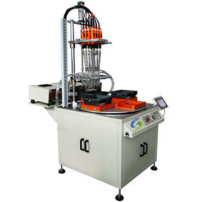 電動起子在工作臺面的空間中上下左右前后隨意挪動,主軸軸承有左右限位開關,將電批移到螺絲口上方再將限位開關固定住,保證電批并不會接觸產品而刮花產品,對正螺絲口后設備帶動電動起子向下壓,電動起子有下壓啟動功能,螺釘接觸到螺絲口自動啟動電動起子,并進行鎖付,鎖付完畢電動起子全自動停止運行,設備將電動起子抬起,螺釘全自動送到電批,將電動起子挪動到下一個螺絲口繼續鎖螺絲。由送料機構將螺釘排序并且通過調節器分派螺釘,管道將螺釘送到電動或氣動起子。